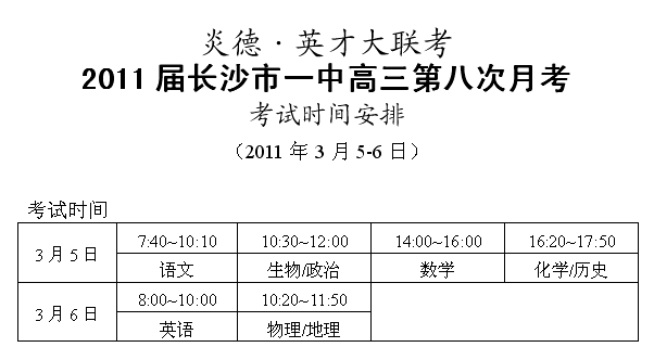上一篇:炎德英才大聯考長沙市一中2011屆高三第七次月考考試時間