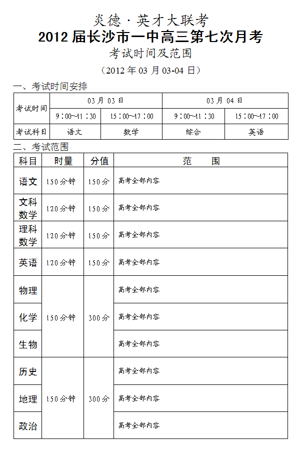 來源:炎德文化點擊:2012-02-29 14:36:43收藏本文當前位置:考試范圍 長沙一中 高三 正文