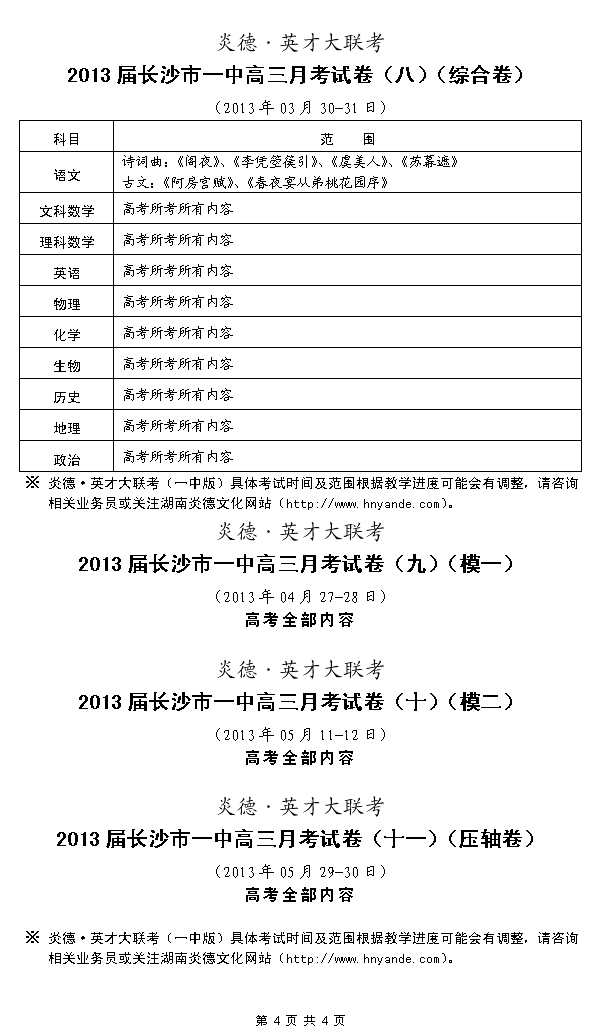 上一篇:炎德英才大聯考長沙市一中2013屆高三第一次月考考試時間和范圍