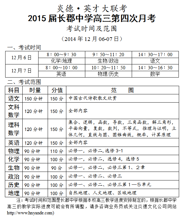 下一篇:炎德英才大聯(lián)考長郡中學2015屆高三第5次月考考試時間和范圍(2015.01.02-03)