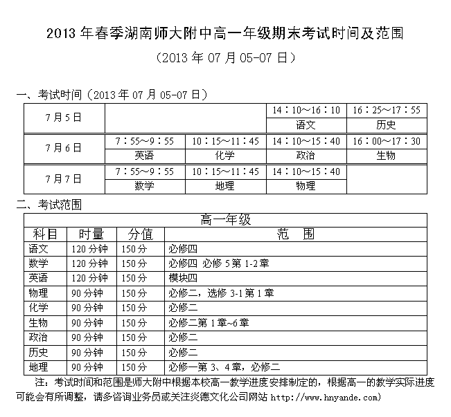 來源:炎德文化點擊:2013-06-25 14:38:21收藏本文當前位置:考試范圍 師大附中 高一 正文