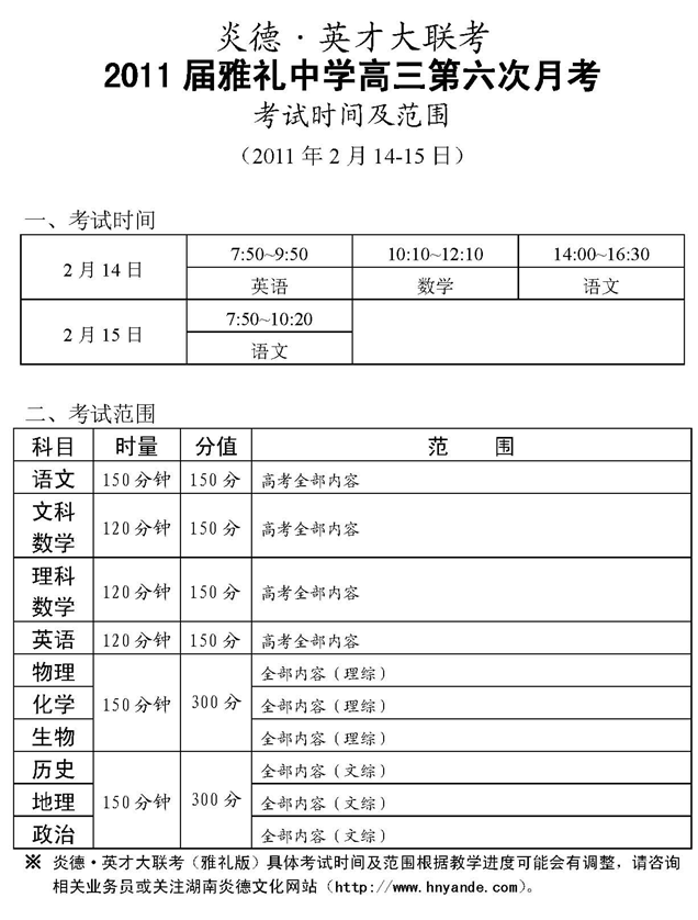 下一篇:炎德英才大聯(lián)考雅禮中學(xué)2011屆高三第七次月考考試時間和范圍