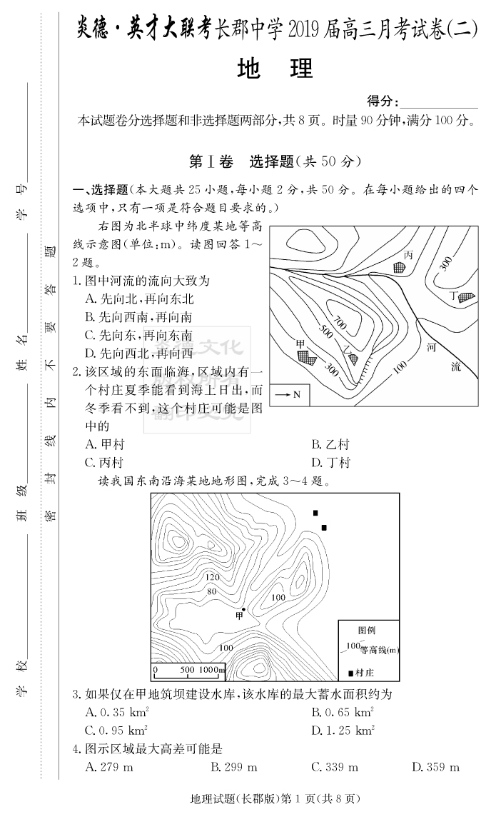 【地理】炎德英才大聯(lián)考2019長(zhǎng)郡中學(xué)高三2次月考
