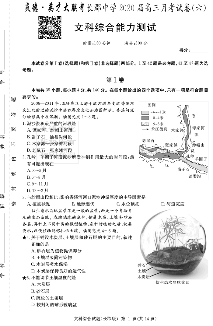 【文綜】炎德英才大聯考2020屆長郡中學高三6次月考