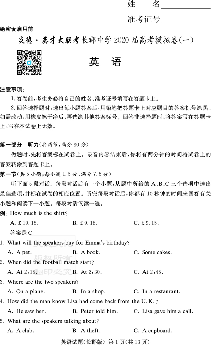 下一篇:【語文】炎德英才大聯考2020屆長郡中學高三9次月考(模擬一)