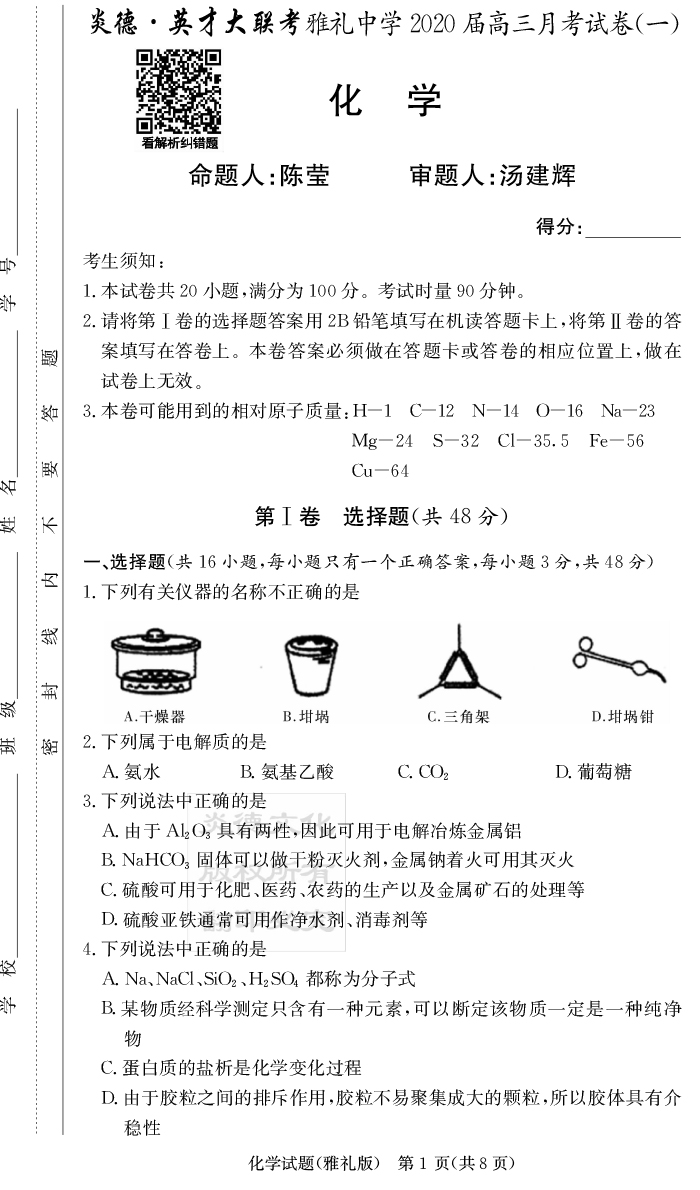 下一篇:【理數】炎德英才大聯考2020屆雅禮中學高三1次月考