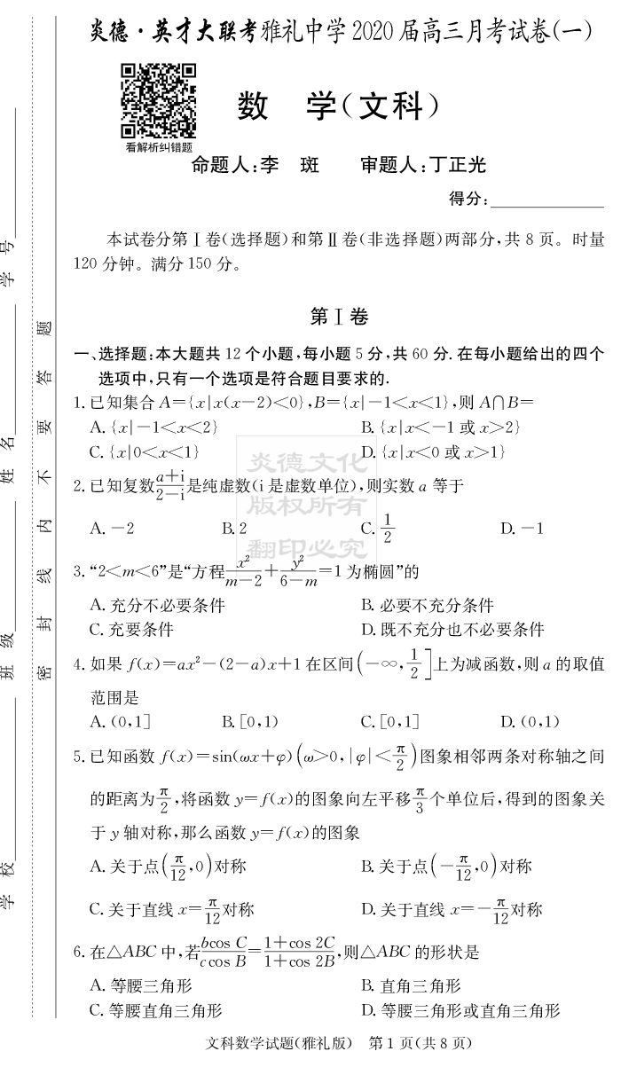 下一篇:【物理】炎德英才大聯考2020屆雅禮中學高三1次月考