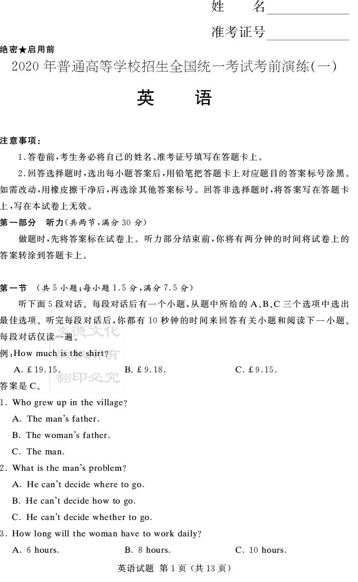 下一篇:【語文】2020年普通高等學校招生全國統一考試考前演練(一)