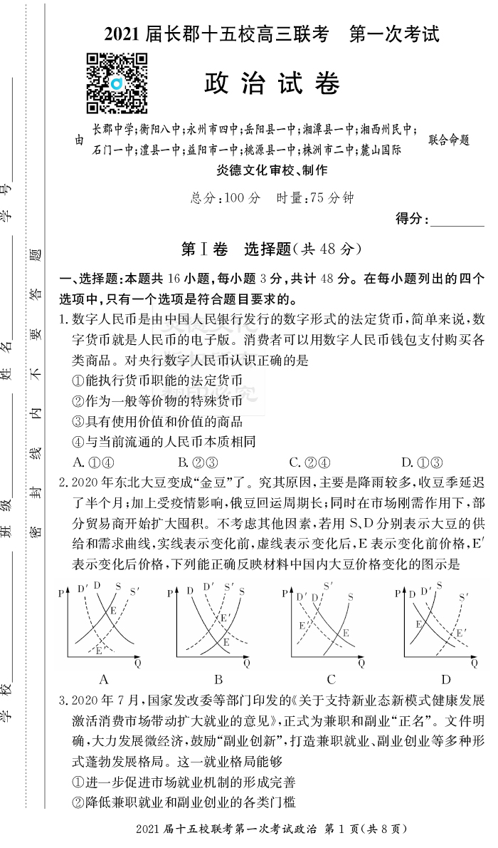 上一篇:【語文】炎德英才大聯考2021屆長郡中學高三7次月考(十五校聯考一)