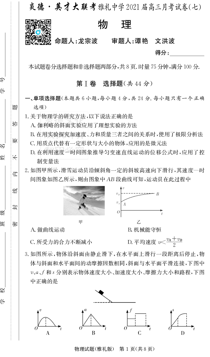 上一篇:【數學】炎德英才大聯考2021屆雅禮中學高三7次月考