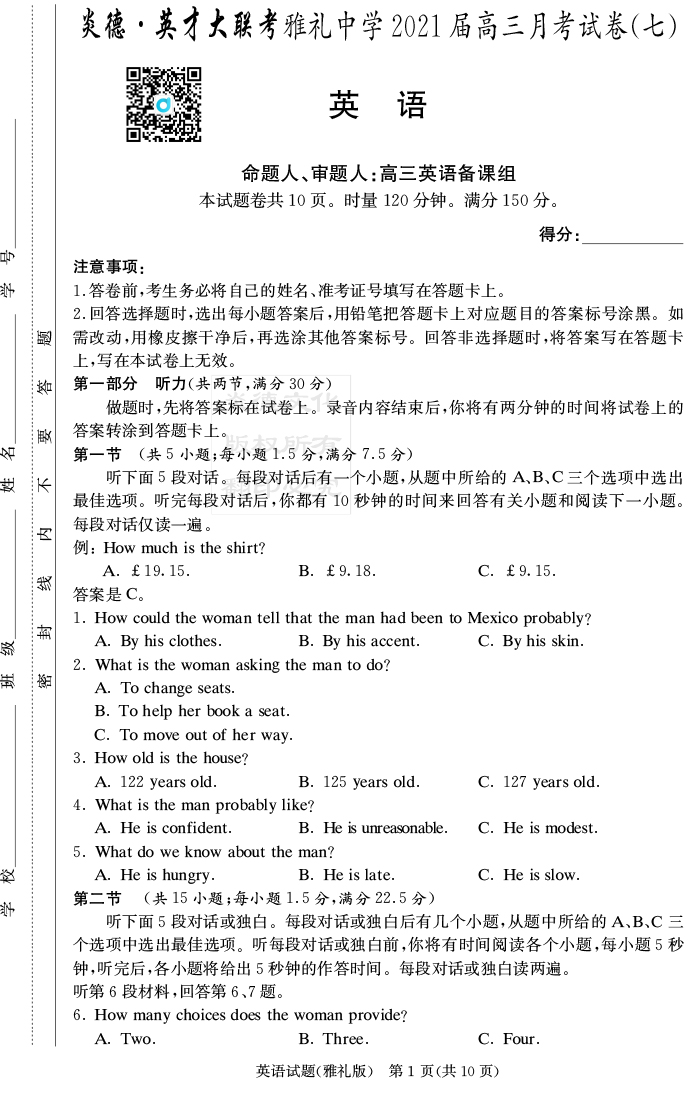 | 資源類別: | 名校月考 | |