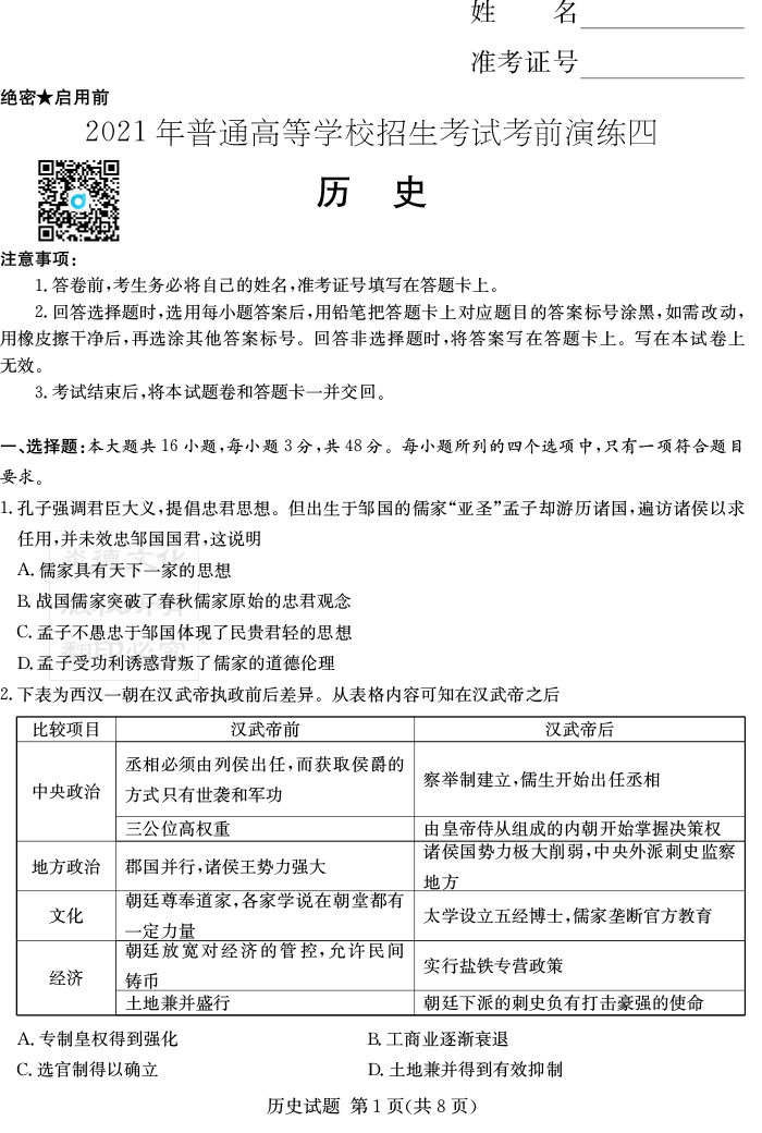 下一篇:【生物】2021年普通高等學校招生全國統一考試考前演練(四)