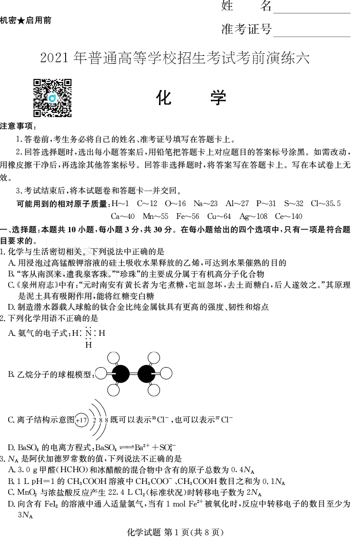 下一篇:【歷史】2021年普通高等學校招生全國統一考試考前演練(六)