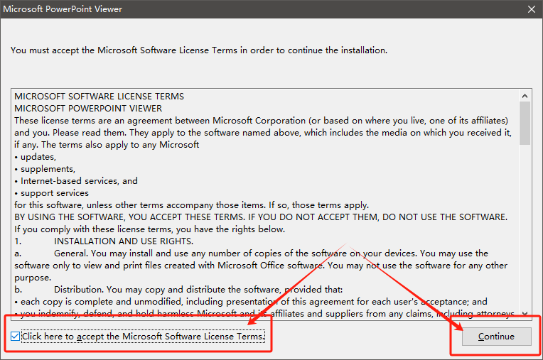 1. 解壓縮或直接運(yùn)行壓縮包內(nèi)的“PowerPointViewer.exe”