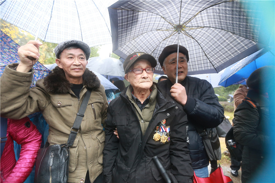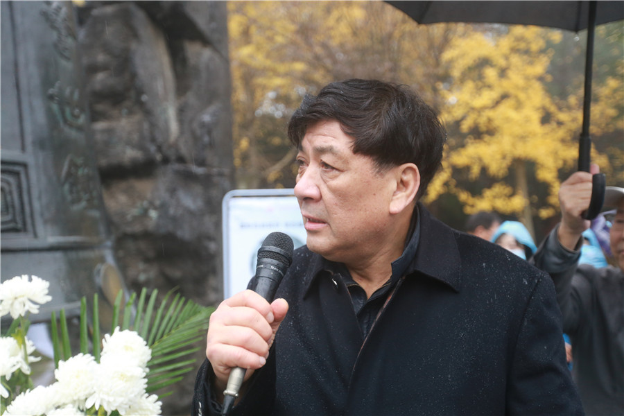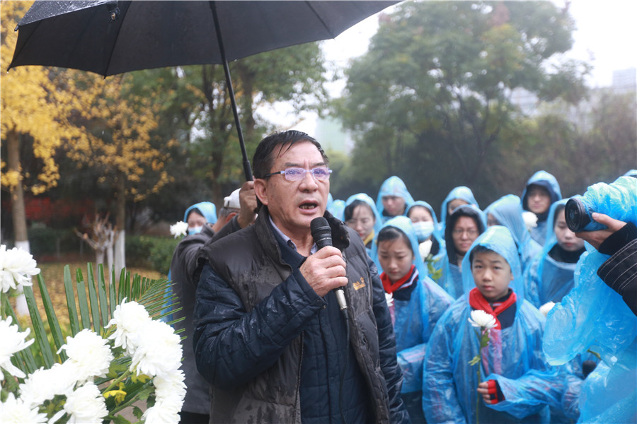 12月13日上午十點,長沙市抗戰文化研究會發起的緬懷抗戰英烈和悼念文夕大火罹難平民儀式在天心公園警世鐘下舉行。參加舉辦本次活動的還有深圳市龍越慈善基金會、湖南省黃埔軍校同學會、長沙市黃埔后裔聯誼會、長沙天心閣公園管理處、抗日戰爭紀念網、抗日戰爭圖書館、星城實驗三小(中嶺小學)、長郡月亮島第二小學、長沙關愛抗戰老兵志愿服務隊、長沙關愛抗戰老兵秋天班、湖南炎德文化實業有限公司、湖南炎德文化實業有限公司黨支部。參加活動的嘉賓還有原湖南省政協副主席、中國國民黨革命委員會第十二屆中央委員會委員劉曉、抗戰老兵陳忠民、房可吉。共有上述舉辦單位的領導、志愿者、學生、老師、黃埔后裔以及市民共計三百余人冒雨參加了本次活動!