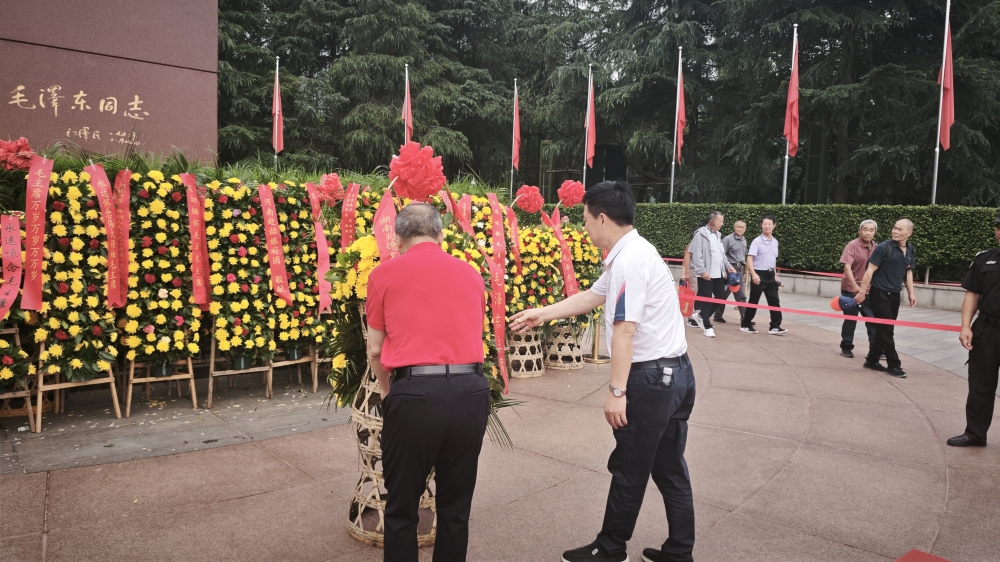 會議開幕前,何譽軍董事長帶領員工參觀了毛澤東紀念館生平館和毛主席故居。在莊嚴的儀仗隊引領下,大家懷著無比崇敬的心情,向毛主席銅像敬獻花籃,以此表達對毛主席的深切緬懷與崇高敬意。